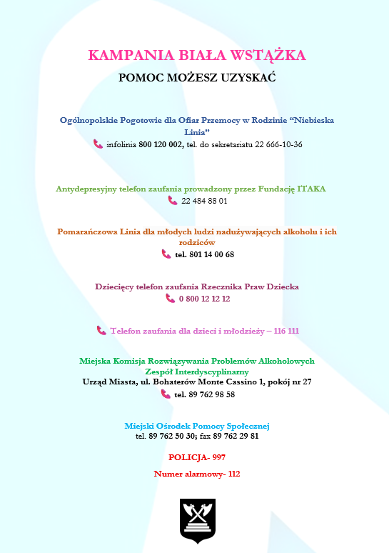 25 listopada br. rozpoczęła się kampania „Biała Wstążka”. To największa międzynarodowa kampania społeczna mająca na celu zwalczanie przemocy wobec kobiet.