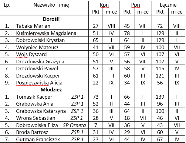 Puchar Burmistrza Miasta Bartoszyce za najlepszy wynik zawodów odebrał Kacper Tomasik (ZSP nr 1, 139 punktów). Puchary Dyrektora Szkoły zdobyli: za II miejsce - Krystian Dobrowolski (129 pkt.), za III miejsce - Magdalena Kuśmierowska (129 pkt.).