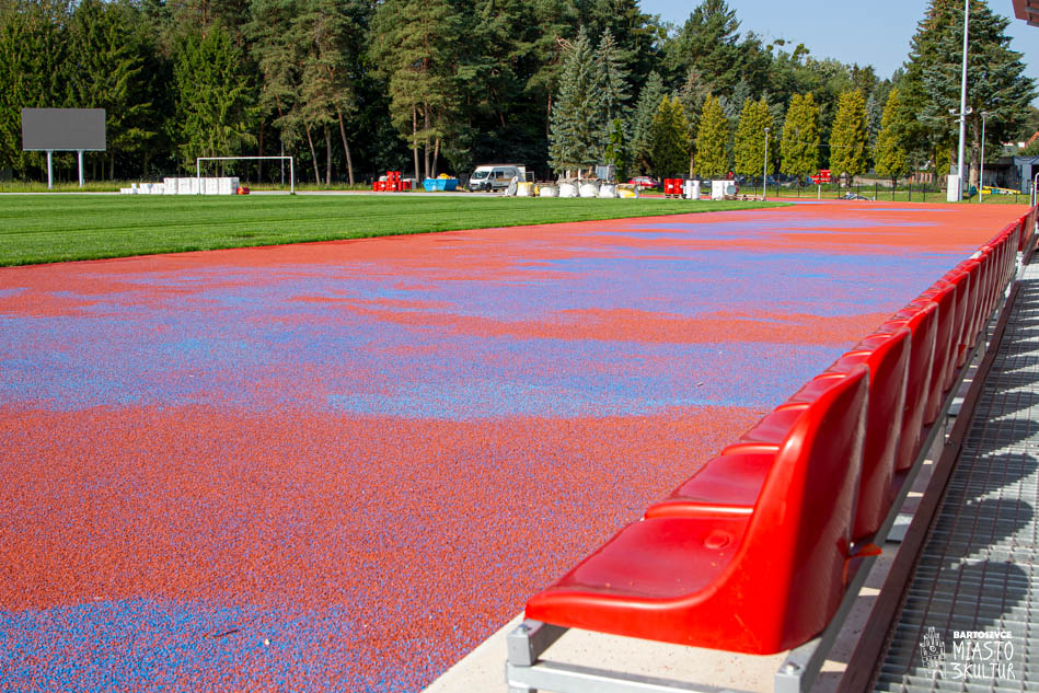 Jednym z elementów przebudowy obiektu jest położenie tartanowej bieżni, która będzie koloru niebieskiego.